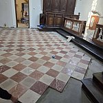 Układanie posadzki w kościele Trójcy Świętej
