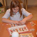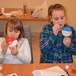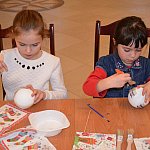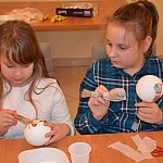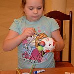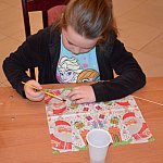 Ostatnie, przed Świętami Bożego Narodzenia, zajęcia artystyczne upłynęły w przedświątecznym nastroju. Temat niby podobny jak przed tygodniem ale inne zadanie artystyczne... zdobienie styropianowych kul techniką "decoupage".