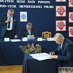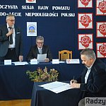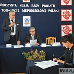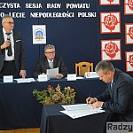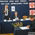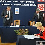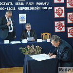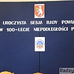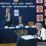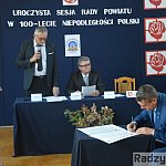Dziś, w sali gimnastycznej I Liceum Ogólnokształcącego, w obecności władz samorządowych i gminnych odbyła się uroczysta sesja Rady Powiatu z okazji 100-lecia odzyskania przez Polskę niepodległości. Specjalnie przygotowany memoriał został podpisany przez powiatowych radnych i umieszczony w specjalnej kapsule czasu, w której znalazły się przedmioty najbardziej charakterystyczne dla jubileuszowego roku od miasta, powiatu, gmin, literackie prace laureatów konkursu, a także publikacje Radzyńskiego Stowarzyszenia Inicjatyw Lokalnych. Metalowy cylinder umieszczono we frontowej ścianie szkoły.