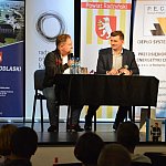 W niedzielę o 16:00 w ROK-u odbyło się spotkanie z Robertem Makłowiczem. Miało ono inny charakter niż zawsze. Tym razem pytania do gościa znajdowały się wypisane na drewnianych widelcach. Pytania odczytywały chętne dzieci z widowni. Uczestnicy dowiedzieli się wiele ciekawych faktów na temat Roberta Makłowicza oraz jego zainteresowań. Spotkanie przebiegało w miłej i sympatycznej atmosferze. Robert Makłowicz jest kucharzem z zamiłowania, pasjonuje go również historia i podróże. Jak sam żartobliwie przyznaje, dziś byłby historykiem, gdyby skończył studia. Gość na koniec otrzymał symboliczne prezenty. Na scenie pojawiła się również jedna z nauczycielek gastronomii, z Zespołu Szkół Ponadgimnazjalnych im. Jana Pawła II, która przypomniała Makłowiczowi o tym, jak 10 lat temu młodzież z ZSP wygrała konkurs gastronomiczny, w którym dzisiejszy gość był jury. Jak się okazuje, nie jest to pierwsze spotkanie Roberta Makłowicza z naszym miastem i mamy nadzieję, że nie ostatnie.