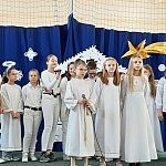 W czwartek 19 grudnia w Szkole Podstawowej im. św. Jana Pawła II w Białce społeczność szkolna mogła obejrzeć tradycyjne Jasełka pt. "Okulary wiary", w wykonaniu dzieci z klasy 2 oraz klas 5-8. Przedstawienie uświetniły występy laureatów VII Gminnego Przeglądu Kolęd i Pastorałek. Widzowie dzięki okularom wiary mogli przenieść się w czasie do rzeczywistości, w której przyszedł na świat Boży Syn. Nie zabrakło tradycyjnych motywów oraz postaci związanych z Bożym Narodzeniem. Jasełka przygotowali Agnieszka Uss oraz Piotr Skowron, wspomagani przez rodziców dzieci z klasy 2, którzy wykonali dekorację. Po występie dyrektor Dariusz Jurek złożył zebranym świąteczne życzenia i podzielił się opłatkiem z przedstawicielami klas, rodziców, pracowników szkoły i nauczycieli.