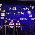 W dniu 12 grudnia 2019 roku w Gminnym Ośrodku Kultury w Kąkolewnicy odbył się piąty konkurs szkolnych inscenizacji teatralnych "Myśl trzeźwo, żyj zdrowo" pod patronatem wójta Gminy Kąkolewnica Anny Mróz oraz Gminnej Komisji Rozwiązywania Problemów Alkoholowych.