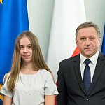 Informowaliśmy już na naszym portalu o wyróżnieniu Eweliny Pajdosz, uczennicy Liceum Ogólnokształcącego im. Ziemi Podlaskiej w Komarówce Podlaskiej w konkursie "Mistrzowie i patrioci". Dziś zamieszczamy fotorelację z wręczenia dyplomu, które miało miejsce w pałacu prezydenckim w obecności samego prezydenta Andrzeja Dudy.