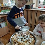 Zgodnie z tradycją tłusty czwartek w Punkcie Przedszkolnym przy Szkole Podstawowej w Zakrzewie obfitował w przepyszne faworki, które dzieci przygotowały wspólnie ze swoimi nauczycielkami. Najpierw było odczytanie przepisu, następnie przygotowanie składników, wyrobienie ciasta, wałkowanie, krojenie i przewijanie. Usmażony produkt posypany cukrem pudrem smakował każdemu.