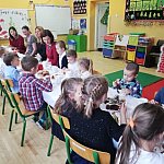 22 grudnia w Szkole Podstawowej w Turowie odbyło się spotkanie wigilijne. Na spotkaniu obecna była pani dyrektor Agnieszka Kłos, wychowawczyni grupy - pani Ewelina Matejek, pani Wioletta Piekarska, pani Klaudia Wajszczuk i inni pracownicy szkoły. Już od rana świąteczny nastrój zapanował w oddziale przedszkolnym. Rodzice chętnie przygotowali poczęstunek dla swoich dzieci. Pani Wioletta przeczytała fragment Pisma Świętego, a pani dyrektor złożyła wszystkim świąteczne życzenia i przekazała opłatek. Podczas poczęstunku śpiewane były kolędy. Dzieci wręczyły zaproszonym gościom własnoręcznie upieczone pierniczki.