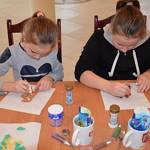 Na zajęciach plastycznych 14 grudnia dzieci zdobiły piernikowe sylwetki mikołajów, reniferów, aniołków, gwiazdeczek, bałwanków, serduszek, choinek i dzwoneczków.
