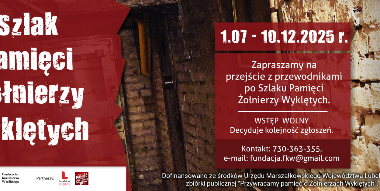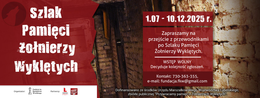 Szczegóły na stronie organizatora: https://www.fkw.edu.pl/przejscia-z-przewodnikiem-po-szlaku-pamieci-zolnierzy-wykletych-w-lublinie-3/