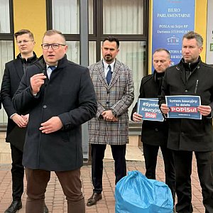 Wczoraj w 100 miejscowościach w całej Polsce odbyła się skoordynowana akcja Konfederacji przeciwko przymusowemu systemowi kaucyjnemu. Jednym z punktów protestu była Biała Podlaska, gdzie przed biurem poselskim posła PiS Dariusza Stefaniuka zorganizowano konferencję prasową. Organizatorzy krytycznie oceniają system kaucyjny jako uciążliwy i generujący koszty. Według ich obliczeń kosztuje on polskie rodziny od 180 do 200 zł miesięcznie. Przedstawiciel Konfederacji, Paweł Komoń - prezes lokalnych struktur Ruchu Narodowego w Radzyniu Podlaskim - zwrócił uwagę na praktyczne problemy systemu – od awarii butelkomatów, przez utrudniony zwrot opakowań, po ryzyko wzrostu opłat za wywóz śmieci. Podkreślił również, że Konfederacja jako jedyna od początku konsekwentnie sprzeciwiała się temu rozwiązaniu. W ramach protestu organizatorzy pozostawili w biurze poselskim PiS-u worki z pustymi butelkami.