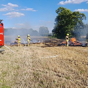 Przedostatniego dnia lipca obok zabezpieczania miejsc wypadków strażacy gasili jeszcze pożar rżyska, bel i słomy po kombajnie, jaki wybuchł w Żabikowie. Wyjechali na akcję o 16:09. Obok zawodowców udział brali w niej ochotnicy z OSP w Żabikowie.