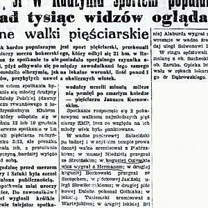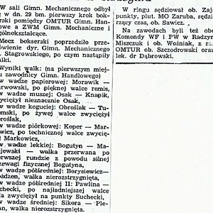 Sędziował walki, podczas wspominanych już na naszych łamach "czwartków pięściarskich". Jak czytamy był inicjatorem tego typu spotkań i założycielem drużyny. Był sędzią punktowym pierwszego międzyszkolnego pojedynku pięściarskiego w naszym mieście: Był doceniany za swoją pracę. Warto zwrócić uwagę na ówczesne nagrody, którymi były: skórzana teczka i dwie książki