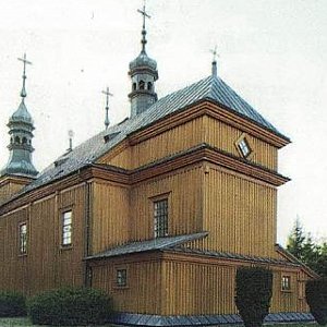Kościół wzniesiony został w stylu barokowym, co jest o tyle ciekawy, że jest... drewniany. Ma podmurówkę i został wzniesiony na planie prostokąta z węższym i wyższym prezbiterium. Wnętrze jest otynkowane i ma boazerię. Zachowane są elementy pierwotnej stolarki, m.in. w przypadku drzwi do zakrystii czy drzwi, przez które wchodzi się na chór muzyczny. Ołtarz główny jest późnobarokowy. W tymże stylu są też tabernakulum i ambona. Te elementy wyposażenia oraz rzeźby pochodzą z czasów budowy kościoła, natomiast obrazy są późniejsze, z końca XVIII albo już z XIX wieku. Konfesjonał i organy są już z początku XX wieku.