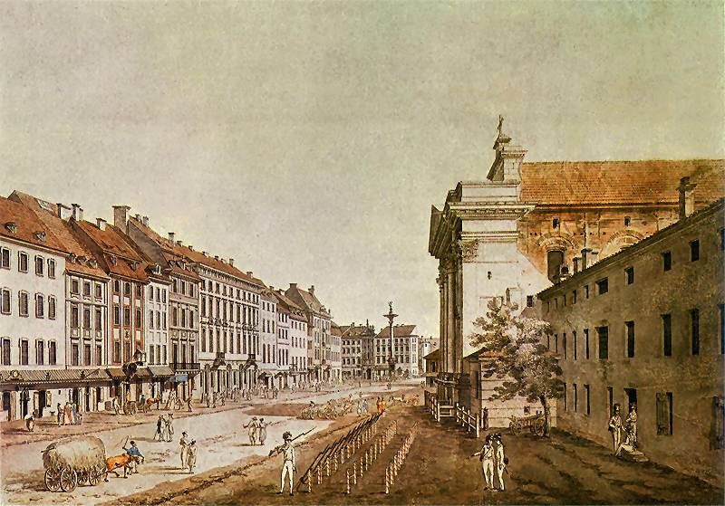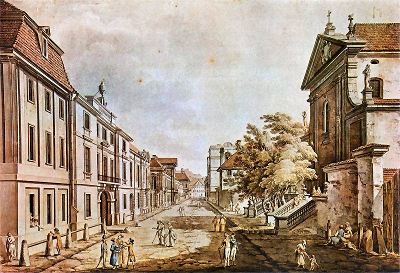 W Warszawie uwiecznił m. in. Wieżę Marszałkowską, ulicę Miodową, ulicę Dziką, park Łazienki, ulicę Nowy Świat, konwikt pijarów, ulicę Mazowiecką, Plac Krasińskich, Krakowskie Przedmieście i wiele innych miejsc. W jego twórczości są też obrazy i rysunki przedstawiające widoki z Krakowa, Gdańska, Wilna, Częstochowy, Puław, Kazimierza, Tarnowa, Ojcowa i wielu innych miejsc. Jeśli o szeroko rozumiany nasz region, warto odnotować, że poza wspomnianą zaprojektowaną przez siebie kaplicą namalował też ogród Aleksandry Ogińskiej. Są trzy jego obrazy przedstawiające Kock – jeden centrum miasta z kościołem i ratuszem, drugi widok od strony Wieprza, trzeci – widok od strony gościńca.