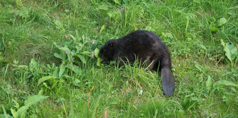 Zdjęcia Tadeusza Kierycha ze ścieżki rowerowej nad Białką w Radzyniu zrobione 14 VIII 2021 roku. "Przyłapane" zostały nie tylko łabędzie, ale także bóbr.