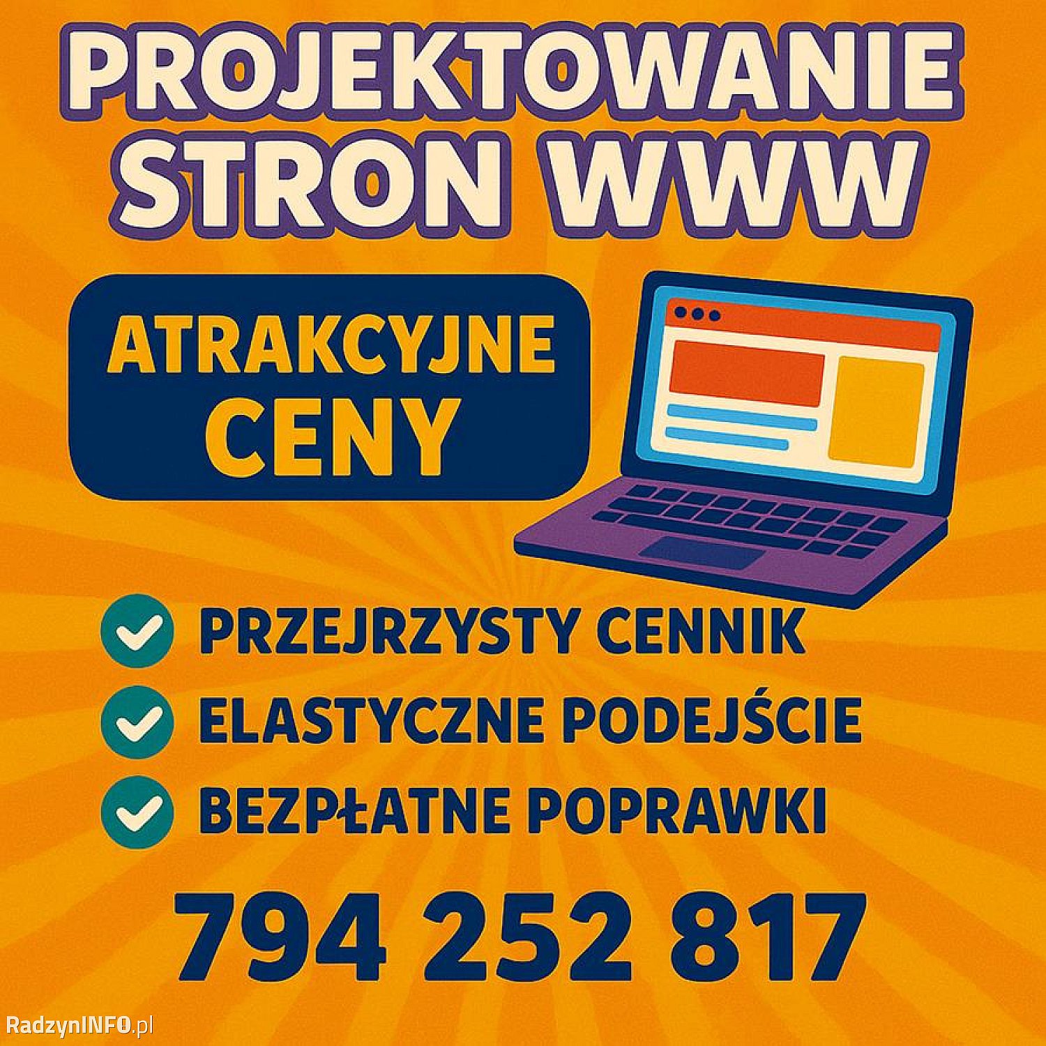 * Transparentny cennik - żadnych ukrytych kosztów. Wszystko, co potrzebne do uruchomienia strony, jest wliczone w cenę.