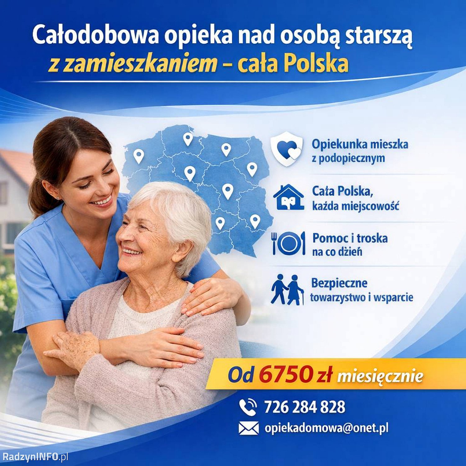 * organizujemy opiekę z zamieszkaniem na terenie całej Polski — najczęściej w ciągu kilku dni