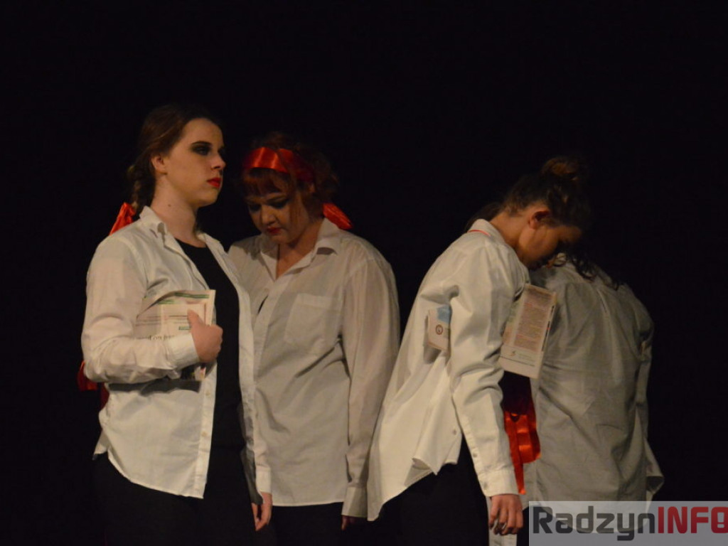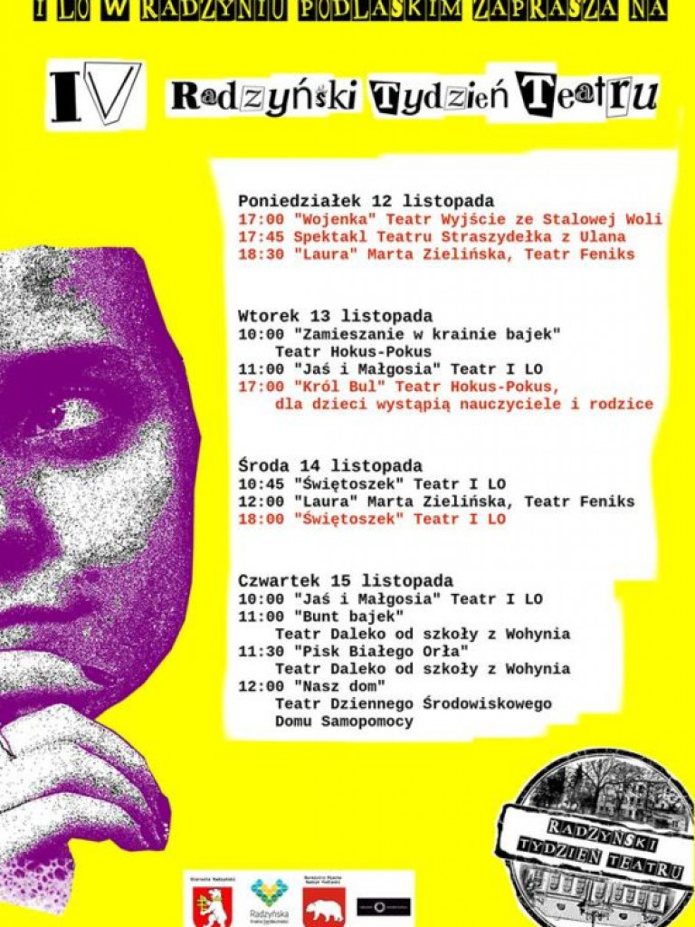 ...Żeby iść do domu w zamyśleniu. Wczoraj, w sali kina "Oranżeria" spektaklem "Wojenka" Teatru Wyjście ze Stalowej Woli rozpoczął się IV Radzyński Tydzień Teatru. Wydarzenie, razem z Radzyńskim Ośrodkiem Kultury, organizuje I Liceum Ogólnokształcące. Sprawczynią pozytywnego, twórczego zamieszania jest polonistka tej szkoły, p. Anna Warwas.